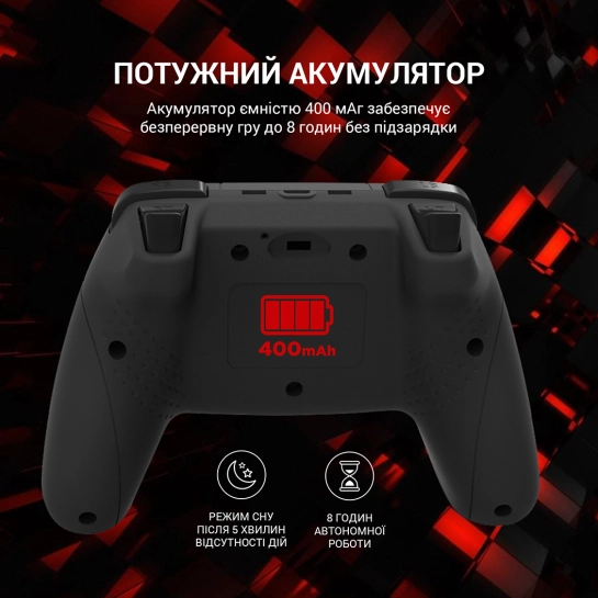 Місткість вбудованого акумулятора 400 мАг. Приблизно 8 годин ігрового часу.
