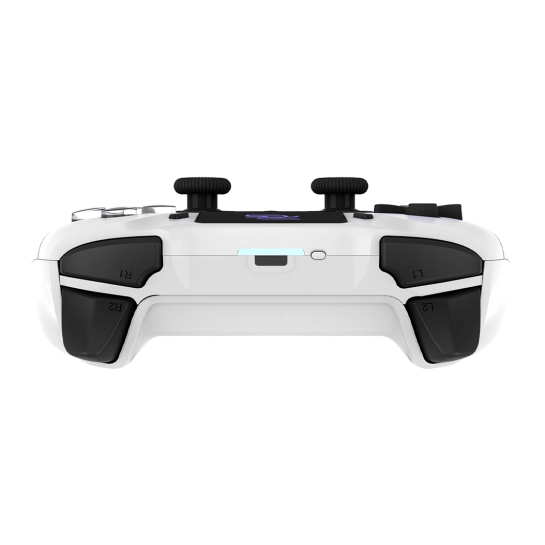 Ігровий геймпад має ергономічну форму, що забезпечує комфорт під час тривалих ігрових сесій. Кнопки вдало розміщені, а джойстики мають текстуровану поверхню для точного керування. Дизайн поєднує стильний зовнішній вигляд з сучасними елементами підсвічування.
