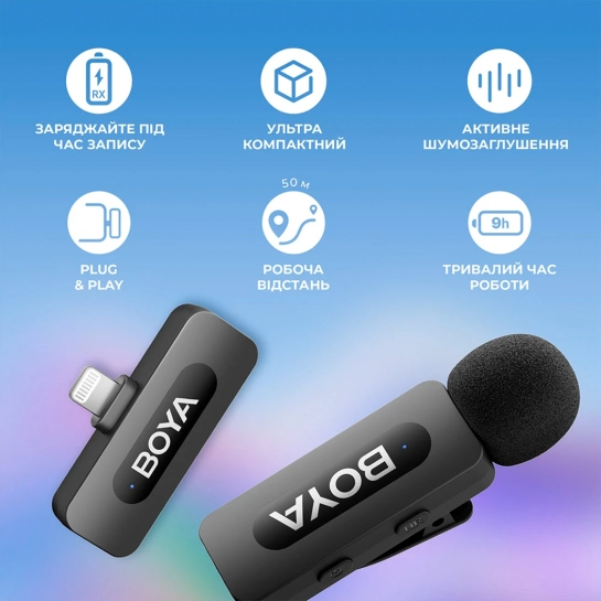 Серія мікрофонів BOYA V поєднує професійну якість звуку, інтуїтивно зрозуміле використання, компактність та надійність. Це потужний інструмент, який знімає технічні бар'єри, дозволяючи зосередитись на творчості та продуктивності, а не на налаштуваннях.
