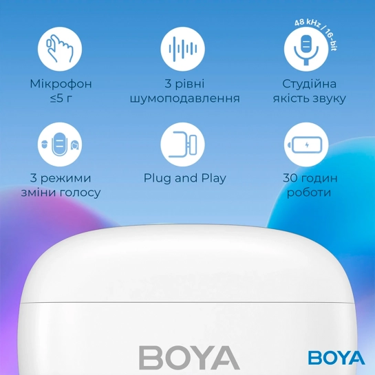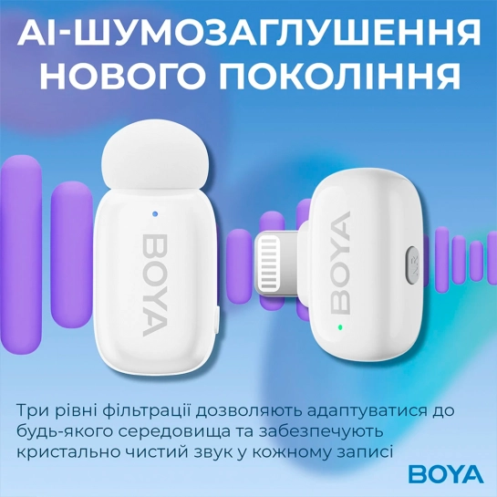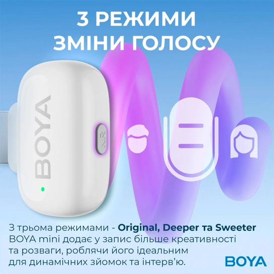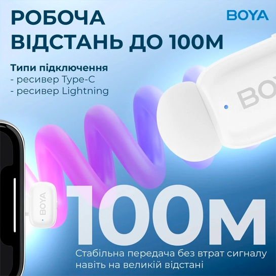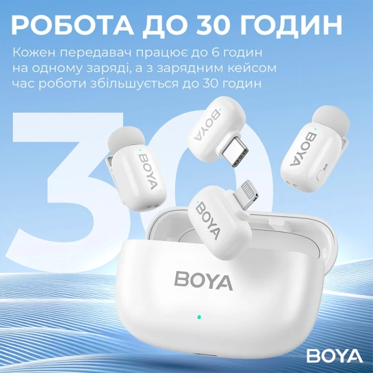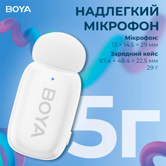 Опис Бездротовий мікрофон петличний BOYA mini-13 Type-C/Lightning White
