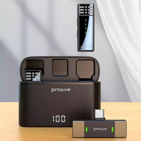 Опис Бездротовий мікрофон петличний Proove Record Type-C Black