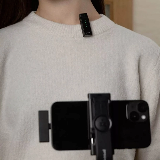 Завдяки технології Plug and Play мікрофон не вимагає встановлення додатків або складних налаштувань — достатньо підключити приймач у роз'єм Type-C, закріпити петличку, і запис починається автоматично. Радіус бездротової дії до 20 метрів забезпечує свободу руху в кадрі і комфорт при роботі.