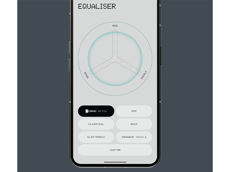 Dirac Opteo™ здійснює революцію у звуковому виконанні, усуваючи акустичні обмеження, гарантуючи, що ви почуєте музику такою, якою її задумав виконавець. Він робить звукову сцену точнішою, деталі багатшими, баси глибшими, а голос — чітким.