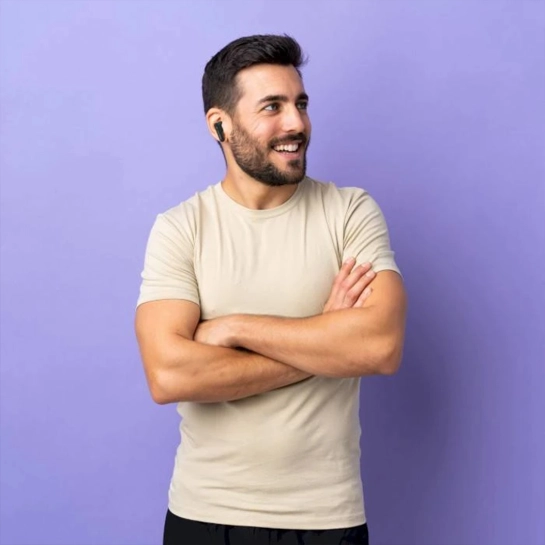Просто вийміть навушники з футляра і вони відразу ж будуть готові до поєднання з вашим пристроєм - телефоном, планшетом, комп'ютером, ноутбуком або телевізором. А для керування відтворенням або гучністю вам не потрібно буде діставати телефон із кишені – все це можна робити за допомогою кнопок на самих навушниках.