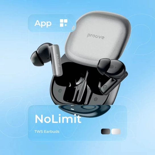 Proove NoLimit TWS підтримують сенсорне управління, дозволяючи легко керувати музикою, гучністю та дзвінками. Функція автопаузи автоматично зупиняє відтворення при знятті навушників і відновлює його при повторному надяганні — зручно і практично в будь-якій ситуації. Підтримка фірмового додатку Proove відкриває розширені можливості: налаштування еквалайзера, управління ANC, режим Game Mode, прозорість, а також кастомізація сенсорних команд.