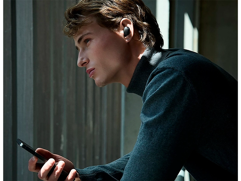 Інтелектуально спроектований повітряний потік знижує внутрішні шуми, зберігаючи природність голосу та рухів. Це також робить конструкцію легшою та комфортнішою для щоденного носіння. Преміальна матова поверхня не лише підкреслює дизайн, а й дарує приємні тактильні відчуття. М'яке покриття полегшує використання та забезпечує комфорт протягом усього дня. Стильний зарядний матовий футляр доповнює навушники, створюючи елегантний мінімалістичний образ. Збалансована форма, що повністю охоплює вухо, підходить для різних розмірів та забезпечує однаково зручну посадку для всіх.