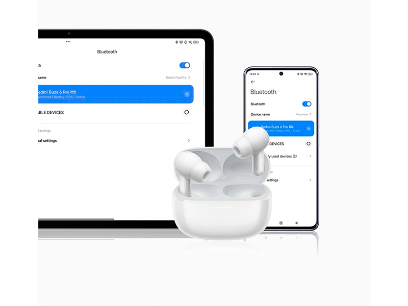 Redmi Buds 6 Pro пропонують розумний зв'язок. Ти можеш підключити дві пари навушників до одного пристрою, а за допомогою швидкого налаштування Bluetooth легко підключитися до пристроїв Android. Також підтримується підключення до двох пристроїв одночасно для максимальної зручності.