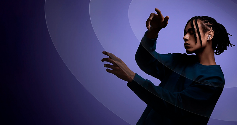 За допомогою вбудованої технології просторового аудіо звук слідуватиме за твоїми рухами голови. Це ідеально підходить для музики, відео, аудіокниг та ігор, створюючи ефект об'ємного звучання, щоб ти відчував себе в центрі подій.