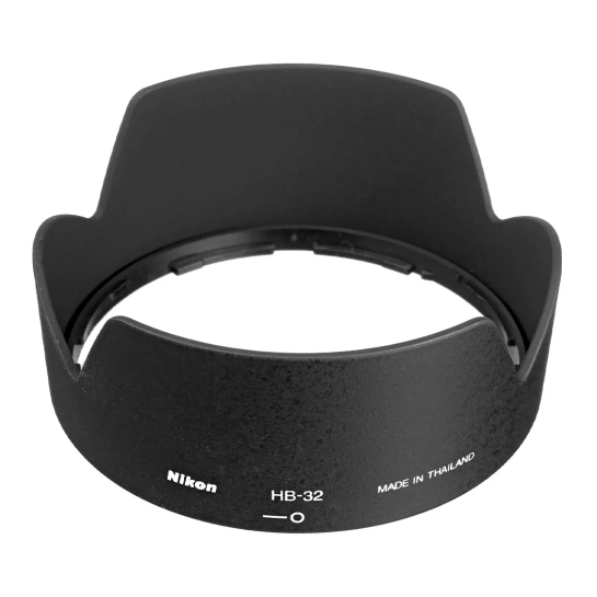 Бленда Nikon HB-32. Захищає від бічного засвічення, що запобігає відблискам і зниження контрасту на зображенні. Підходить для: