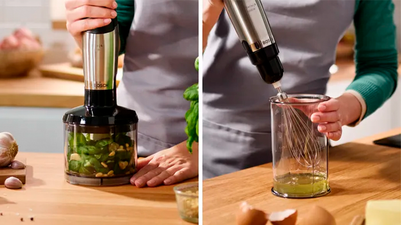 Домашня їжа смачна та корисна. За допомогою подрібнювача такі інгредієнти як зелень, горіхи, м'ясо та цибуля подрібнюються за кілька секунд. За допомогою віночка можна збивати яєчний білок і крем для десертів, замішувати легке тісто для млинців.
