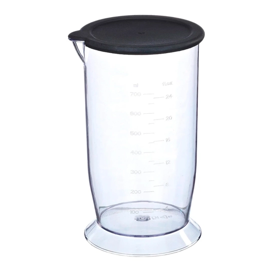 У комплекті з блендером йде склянка об'ємом 700 мл з пластиковою кришкою, що ідеально підходить для приготування та зберігання різних сумішей та напоїв.