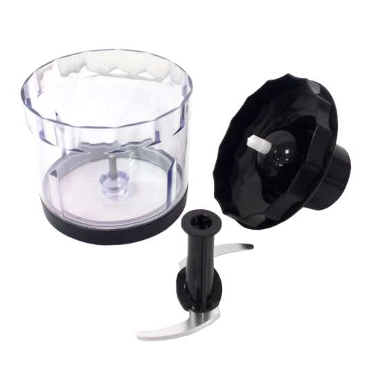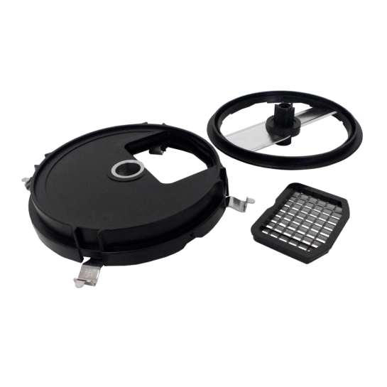 Також у комплекті є мірна склянка на 600 мл з кришечкою. Насадка для нарізування кубиками 8х8 мм.