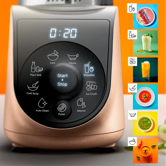 8 автоматичних програм забезпечують оптимальну швидкість та час змішування для ідеальної текстури смузі, рослинних напоїв, соусів та супів-пюре.