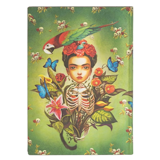Колекція блокнотів канадського бренду Paperblanks Flexis – гнучкі, зносостійкі, тактильно ідеальні записники. На відміну від класичних Paperblanks, обкладинки Flexis можна гнути та згортати без шкоди для зовнішнього покриття та внутрішнього вмісту. На обкладинці показано яскравий образ знаменитої мексиканської художниці Фріди Кало, створений французьким письменником та ілюстратором Бенжаменом Лакомбом. Його стиль, в якому змішалися поп-сюрреалізм та лоуброу-арт, виглядає вінтажно і водночас сучасно.