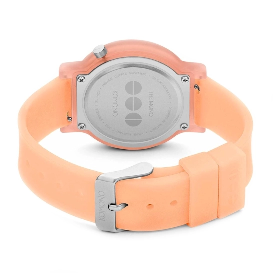 Годинник Mono Blush від бельгійського бренду KOMONO - мінімалістичний і одночасно незвичайний і унікальний. Корпус годинника з полікарбонату, а задня кришка з нержавіючої сталі. Циферблат без зайвих деталей, тільки лаконічні насічки та лого бренду. Захищений високоякісним мінеральним склом. Механізм надійний, японський кварцовий. Модель має легкий клас водонепроникності 5 АТМ – годинник витримує потрапляння під дощ, в них можна помити руки, але перед душем краще зняти. Годинник доповнює силіконовий ремінець у колір корпусу із системою легкої заміни.