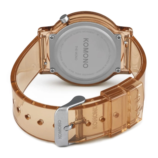 Годинник Mono Clear Blossom від бельгійського бренду KOMONO - мінімалістичний і одночасно незвичайний і унікальний. Корпус годинника з полікарбонату, а задня кришка з нержавіючої сталі. Циферблат без зайвих деталей, тільки лаконічні насічки та лого бренду. Захищений високоякісним мінеральним склом. Механізм надійний, японський кварцовий. Модель має легкий клас водонепроникності 5 АТМ – годинник витримує потрапляння під дощ, в них можна помити руки, але перед душем краще зняти. Годинник доповнює силіконовий ремінець у колір корпусу із системою легкої заміни.