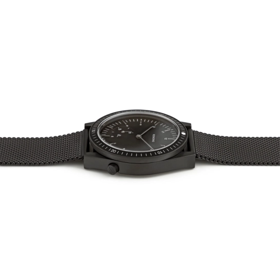 Ray Legacy Mesh Black від бельгійського бренду KOMONO – оновлена версія класичного годинника для дайверів. З секундоміром та функцією зворотного відліку. Поєднання функціональності та стилю. Корпус годинника виконаний з легкосплавного металу, а задня кришка з нержавіючої сталі. Мають водозахист 5 ATM. Контрастний циферблат захищений високоякісним мінеральним склом. Механізм надійний, японський кварцовий. Годинник доповнює браслет із нержавіючої сталі в тон корпусу.