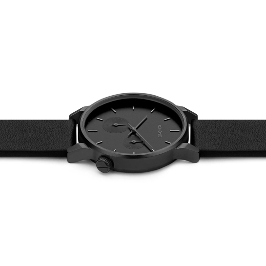 Годинник Winston Double Subs Black від бельгійського бренду KOMONO – модель із люксовим характером для тих, хто цінує свій час. Чорний корпус годинника виконаний з легкосплавного металу, а задня кришка з нержавіючої сталі. Модель має два мінімальні суб-циферблати. Основний циферблат виконаний у чорному кольорі та захищений високоякісним мінеральним склом. Механізм надійний, японський кварцовий. Модель доповнює шкіряний ремінець чорного кольору.