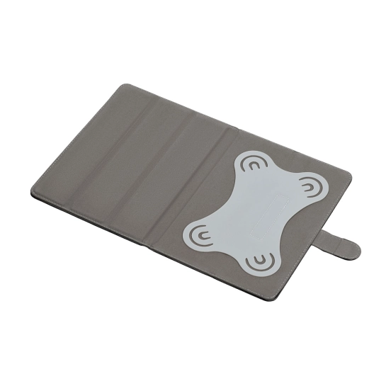 Універсальна обкладинка для планшетів та електронних книг. Зовнішня частина виготовлена з якісної PU шкіри, всередині м'яка підкладка з мікрофібри. У закритому положенні чохол фіксується на магнітну застібку. Для встановлення планшета передбачено спеціальне силіконове кріплення. Чохол має положення для роботи, читання та перегляду відео.