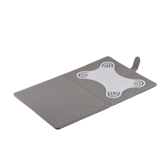 Зовнішня частина чохла виготовлена з еко-шкіри, внутрішня – з мікрофібри, клямка – з полікарбонату. Завдяки спеціальним рельєфним насічкам на внутрішній пластиковій частині підставку можна встановити в будь-якому зручному положенні. Кришка фіксується магнітом.