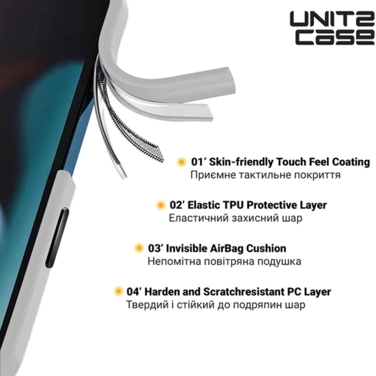 Конструкція чохла допомагає мінімізувати ризик пошкоджень при випадкових падіннях, ударах чи контакті з твердими поверхнями. Завдяки продуманій формі та стійкості до зносу, аксесуар захищає корпус пристрою від подряпин, потертостей та інших слідів експлуатації, зберігаючи смартфон в акуратному стані.