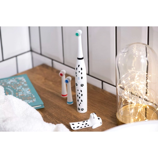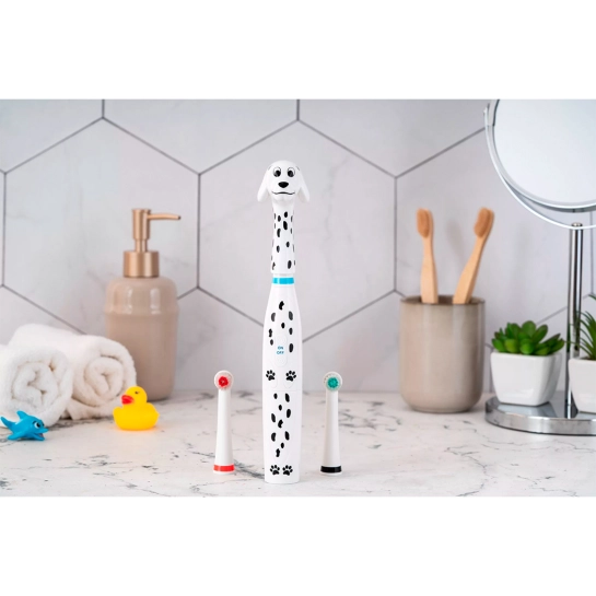 Дитяча електрична зубна щітка ARDESTO ETB-003DOG з унікальним дизайном у вигляді милої собачки-далматинця перетворює процес чищення зубів на захоплюючу гру. М'яка щетина ніжно очистить зуби дитини, забезпечуючи ретельний та дбайливий догляд. Клас захисту IPX6 – щітку можна мити під струменем води. Працює від двох батарей стандарту ААА, їх ресурсу вистачить на кілька тижнів безперервної роботи. Для дітей віком від 5 років.