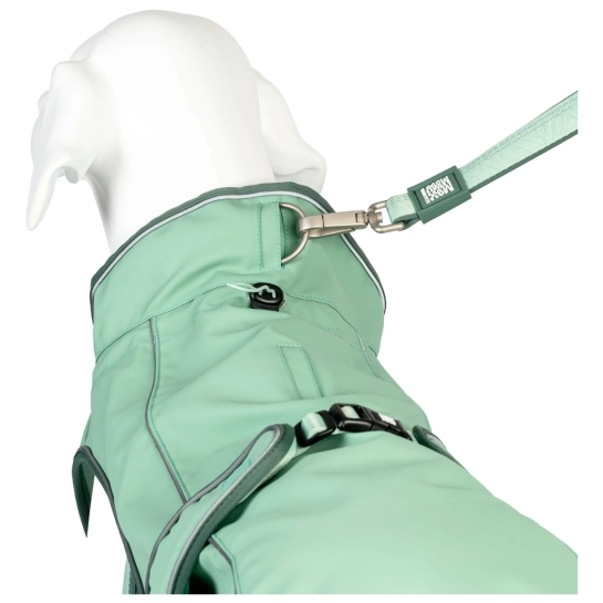 Дощовик передбачає два отвори для кріплення поводка, що дозволяє власнику обирати спосіб фіксації залежно від використаної амуніції. Поводок можна пристебнути як до шлейки, так і до нашийника, що робить дощовик універсальним і сумісним з різними типами екіпіровки для собак.