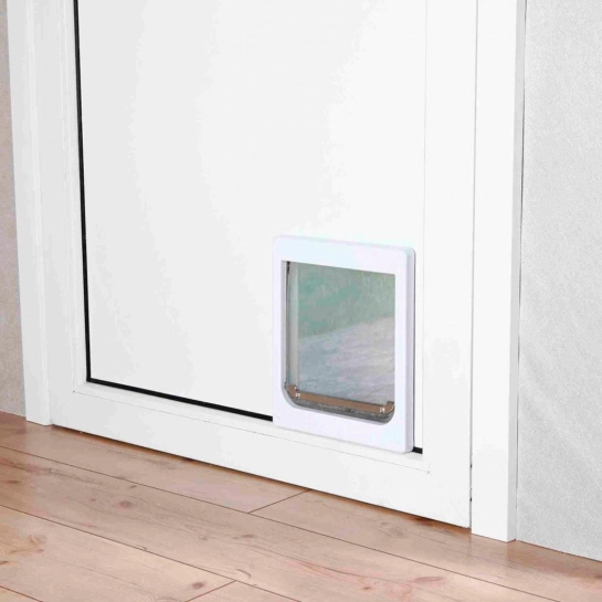 Дверцята для собак (розмір XS–S) виготовлені з міцного пластику і призначені для зручного та безпечного виходу вихованця.