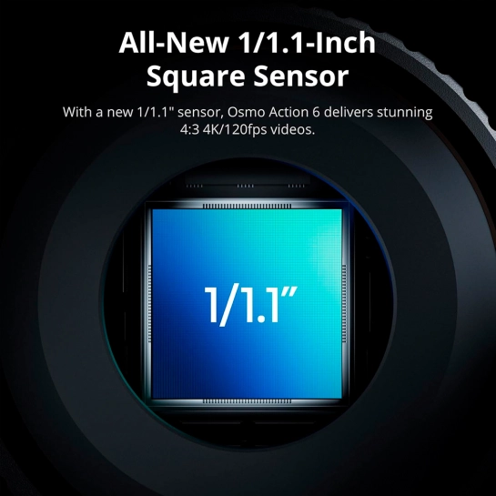 Osmo Action 6 відкриває розширені можливості для відеозйомки завдяки поєднанню змінної діафрагми та оновленого квадратного сенсора 1/1.1". Камера дарує більше контролю над експозицією та дозволяє створювати професійні кадри у різних умовах, розширюючи творчі сценарії для користувачів.