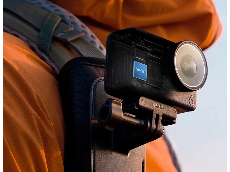Інтегрований накопичувач об'ємом 50 ГБ дозволяє продовжувати зйомку навіть без картки пам'яті. Це збільшує мобільність і допомагає не втратити важливих моментів під час активних зйомок.