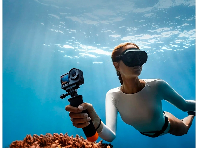 Камера водонепроникна до 20 м без додаткових аксесуарів, а датчики колірної температури та тиску забезпечують коректну передачу кольорів та збереження параметрів занурення. Це робить модель зручною для дайвінгу та плавання.