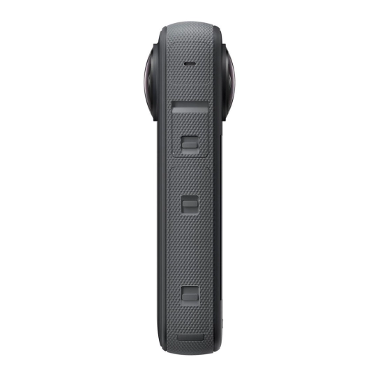 Зовні камера мало чим відрізняється від попередника лінійки Insta360 ONE. Це все той же плоский вертикально витягнутий форм-фактор. Винятком є дещо змінені габарити, підлаштовані під апаратне оснащення. X3 представлена виключно у темному забарвленні.