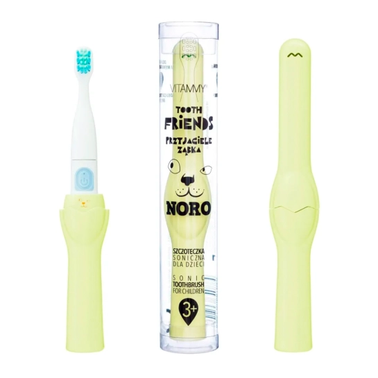 Кожна зубна щітка лінійки Friends стане другом вашого малюка, тому вибирайте найкрутішого, серед яких Сашимі, Кімчі, Норо, Чика та Тутфрут. 3 роки – ідеальний час, щоб розпочати свою пригоду з електричними зубними щітками, а Vitammy Tooth Friends – чудова помічниця у цій подорожі. З нею щоденна гігієна ротової порожнини буде ретельною, простою і безпечною, а ще Vitammy допоможе сформувати здорові звички.