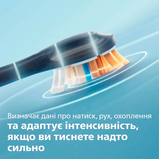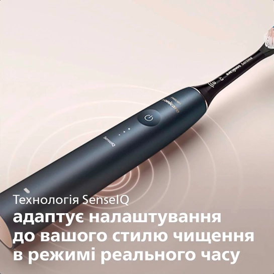 Технологія SenseIQ допоможе вам знайти збалансований стиль чищення – вона розпізнає силу натискання, рух щіткою та область чищення до 100 разів на секунду протягом усього сеансу. При надмірному тиску зубна щітка автоматично підлаштує рівень інтенсивності, щоб ви не пошкодили зуби та ясна.