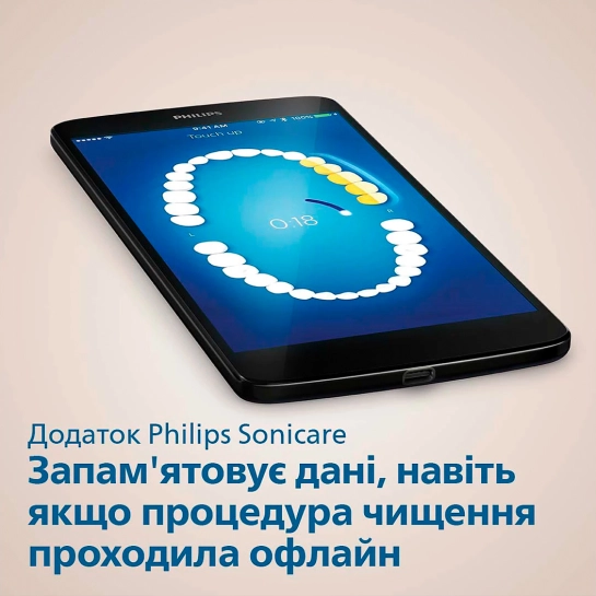 Досягайте цілей чищення із зубною щіткою та додатком Sonicare. Щітку легко підключити до програми — з ним ви отримуватимете персональні рекомендації та статистику для покращення техніки чищення. Відстежуйте прогрес, покращуйте техніку та отримуйте відгук для ефективного чищення. Вас не зупинити! А автоматична синхронізація допоможе отримати актуальні відомості про чищення в програмі, навіть якщо ви не синхронізували щітку під час чищення.