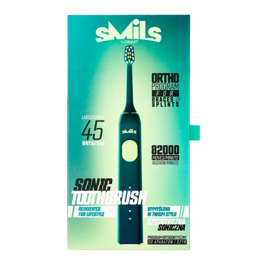 VITAMMY Smils – це зубна електрична щітка у вишуканому ретро-футуристичному дизайні! Вона пропонує 5 режимів, включаючи очищення ортодонтичних конструкцій, тому вибирайте відповідний вашому запиту та отримайте всі переваги потужності до 82 000 коливань на хвилину. Додатковими опціями моделі є індикатор зношування насадки, контроль тиску та функція пам'яті.