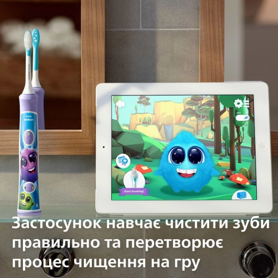 Philips Sonicare For Kids – це розумна звукова зубна щітка, яка перетворює чищення зубів на захоплюючу гру. Завдяки інтерактивному додатку Sonicare For Kids діти вчаться правильно чистити зуби, отримують мотивацію та із задоволенням формують звичку щоденного догляду за ротовою порожниною.