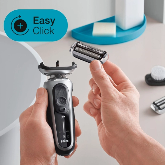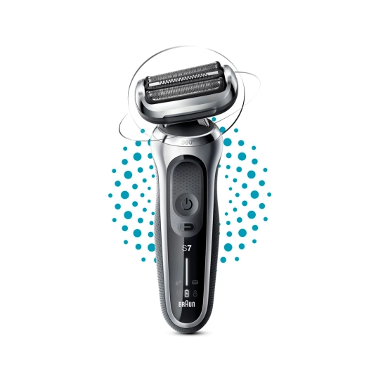 Braun Series 7 71-S1000s забезпечує ідеально гладке гоління навіть у важкодоступних місцях завдяки голівці, що повертається на 360 ° . Бритва ефективно справляється навіть із жорсткою щетиною: технологія AutoSense аналізує густоту волосся та автоматично регулює потужність, забезпечуючи оптимальну ефективність при кожному русі.