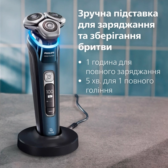 Повна зарядка бритви в елегантній підставці займе лише 1 годину. Ця підставка підійде як для заряджання, так і для зберігання пристрою. Поспішайте? Поставте бритву на зарядку на 5 хвилин – цього вистачить на цілий сеанс гоління.