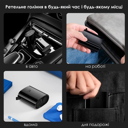 - Компактний розмір: З довжиною 7 см і вагою всього 135 г, K8 Mini-Shave легко поміщається в кишеню або невелику сумку, ідеальна для використання вдома або у подорожах.