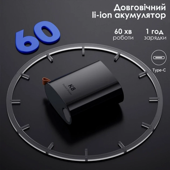 - Металевий корпус: Бритва K8 Mini-Shave має стильний металевий корпус, що підвищує її довговічність та стійкість до механічних пошкоджень, а також надає елегантного вигляду.