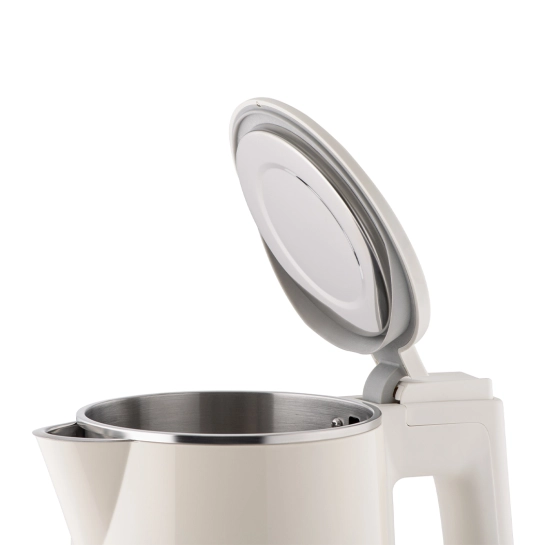 Пристрій безпечний, оскільки має захист від включення без води. Крім того, воно автоматично вимкнеться після закипання води, тому не потрібно турбуватися, що вода википить і буде пожежа. Конструкцією передбачено плавний механізм відкриття/закриття кришки та забезпечене щільне її прилягання, щоб унеможливити випадкове відкриття та розбризкування води. Ергономічна рукоятка забезпечує комфортне використання як лівою, так і правою рукою без навантаження на кисть. У комплекті є підставка, що обертається на 360 ° і служить місцем зберігання кабелю.