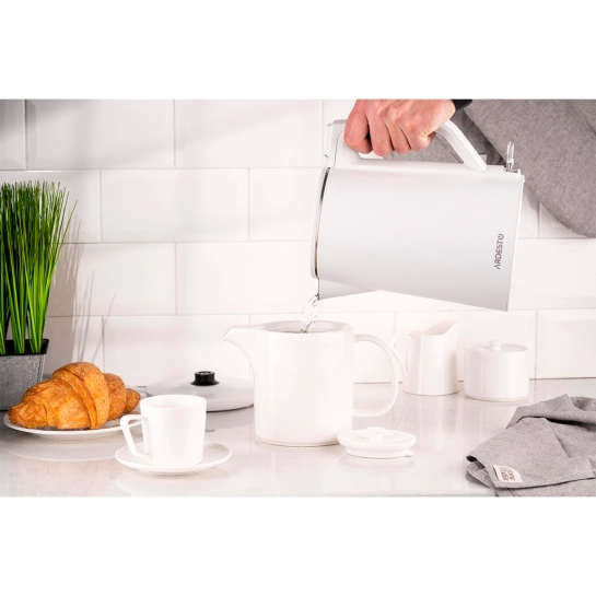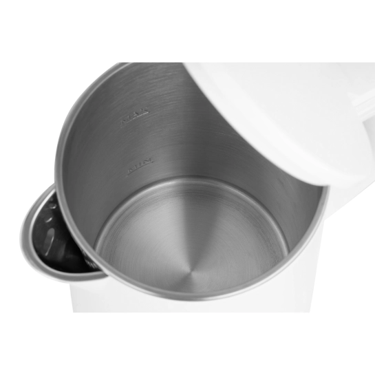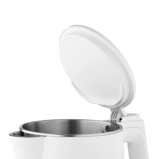 Безпечний пристрій оснащений функцією Strix-контролю та витримує до 12 000 циклів закипань. У комплектації – база із обертанням на 360°. Передбачено захист від увімкнення без води та автоматичне вимкнення при закипанні. Робота чайника супроводжується світловою індикацією. Модель має ручку для зручного використання як лівою, так і правою рукою. Завдяки корпусу білого кольору із безпечного та міцного пластику буде доречним на будь-якій кухні.