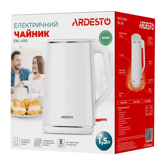 Елегантний електрочайник ARDESTO EKL-X50 має об'єм 1,5 л, оптимальний для сім'ї із 4 осіб. Корпус мінімалістського дизайну із подвійними стінками. Оснащений прихованим нагрівальним елементом, що гарантує тривалий термін служби. При потужності 1850-2200 Вт можна закип'ятити воду в чайнику за кілька хвилин.
