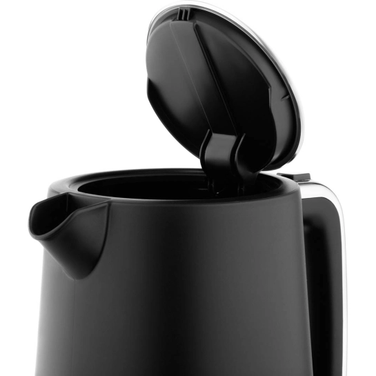 Корпус виготовлений з високоякісного пластику з матовим покриттям, стійкого до зношування та відбитків. Ергономічна ручка зручно лежить у руці, і легко переносити чайник навіть при повному завантаженні.