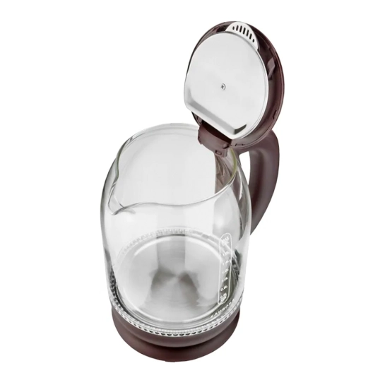 Кнопка для відкривання кришки чайника розташована на кришці. Натискання кнопки дозволяє легко відкрити кришку. Широкий діаметр горловини додає зручності та спрощує процес чищення чайника. Широкий рот дозволяє наливати воду, не відкриваючи кришку.