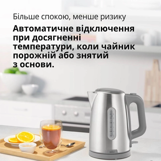 Електрочайник Braun WK 1500 — це поєднання преміального дизайну, високих стандартів безпеки та технології швидкого кип'ятіння, яка забезпечує максимальний комфорт при щоденному використанні.