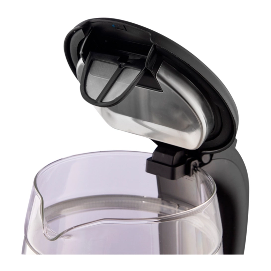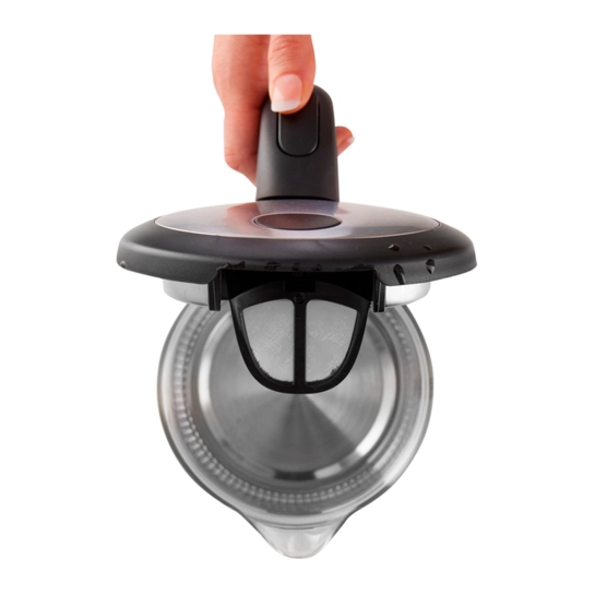 - Відкривання за допомогою кнопки: кришка чайника відкривається натисканням однієї кнопки, що забезпечує комфорт та безпеку під час використання.
