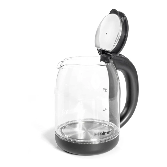 З потужністю 1500 Вт Holmer HKS‑2025 здатний швидко довести до кипіння до 1,8 літра води — цього достатньо для 4–6 чашок напою за один раз. Прихований дисковий нагрівальний елемент не лише забезпечує рівномірний нагрів, а й спрощує очищення, оскільки на ньому не так легко накопичується накип.