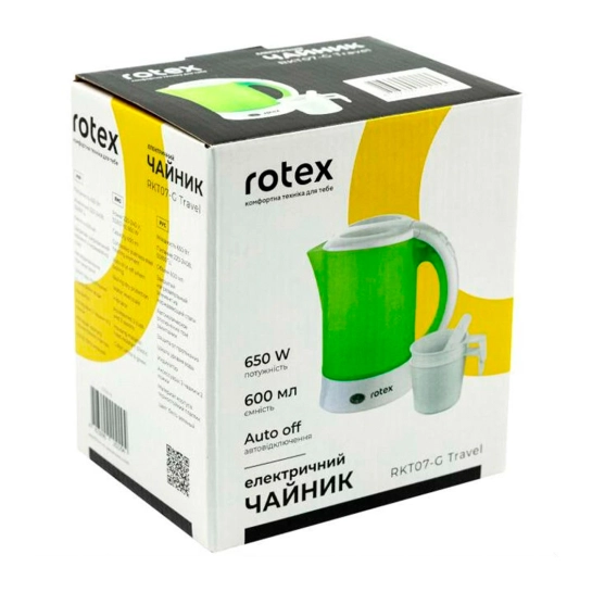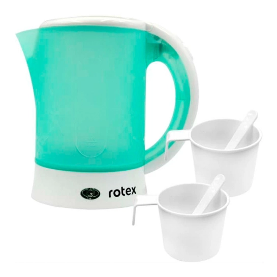 Електрочайник Rotex RKT07 Travel - це дуже вдала модель пристрою, призначеного для вас комфорту у дорожніх умовах. Він відмінно підходить для поїздок і відряджень, тому що має малу вагу (780 м) і компактні розміри, що дозволяють взяти техніку із собою. При тому, що чайник практично за розмірами та масою дорівнює кип'ятильнику, він набагато зручніший у побуті. Корпус об'ємом 0.6 л виготовлений із пластику. Матова прозора структура дозволить контролювати рівень води відповідно до шкали. Пристрій оснащений світловим індикатором, який служить сигналом, що допомагає визначити, чи чайник у стані вироблення тепла. Як тільки він закипить, індикатор відразу відключиться, тим самим даючи вам знак, що окріп можна використовувати.